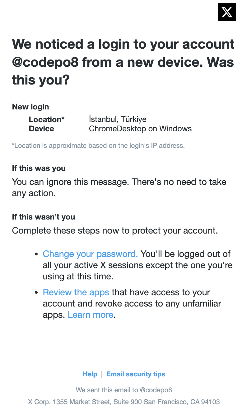 Meanwhile, a second email came in from X that stated that the email of my accoungt has been changed to `ashleyhavilii@gmail.com`.