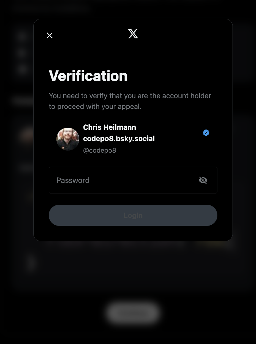 I immediately went to my X account and try to my password, but the damage was already done. Instead of being able to change my password, I got a message that my account is locked and I need to use my authentication app to unlock it. I don’t have an authentication app set up for my X account, so I was locked out of my account and had to go through the account recovery process.